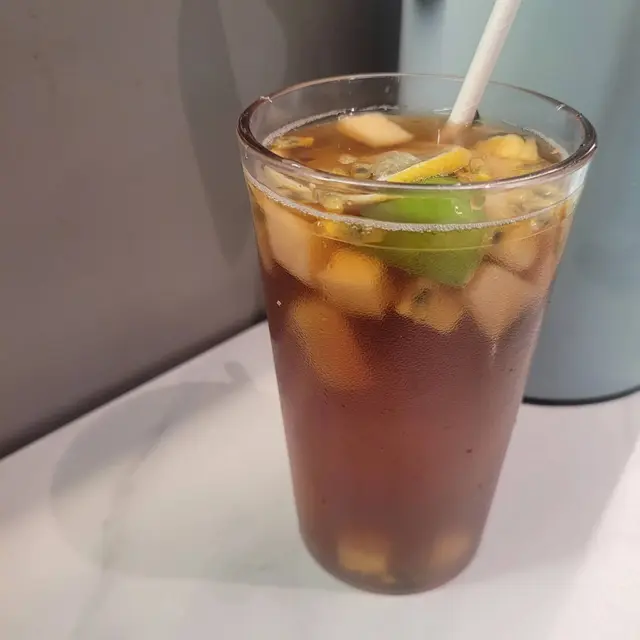 新鮮水果烏龍茶可是姚姚酸菜魚招牌飲料之一,也是不少人一喝就上癮的水果茶,新鮮水果烏龍茶採用烏龍茶,裡面還有蘋果、青檸、百香果、菠蘿等水果,整杯都可以看到各種水果,喝上來酸甜,真的好喝,喝完記得把水果撈起來吃,不能浪費。