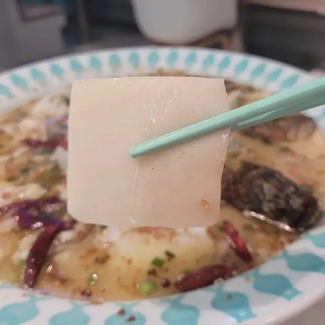 姚姚酸菜魚的千葉豆腐就是不一樣,千葉豆腐咬感滑彈,吸滿酸菜湯有著層層疊疊的厚實酸香,勾人食慾,親身嚐過就懂得甚麼叫做令味蕾直接飛往四川的街頭小巷裡。
