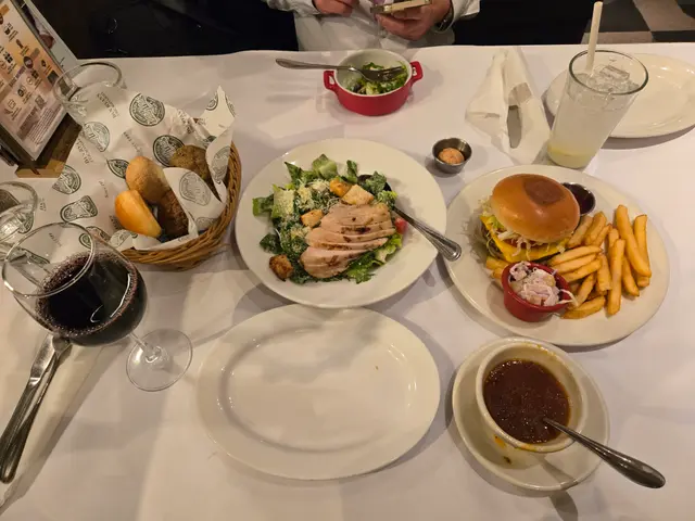 我哋叫咗一個烤雞肉凱撒沙律同經典芝士漢堡;happy share.
