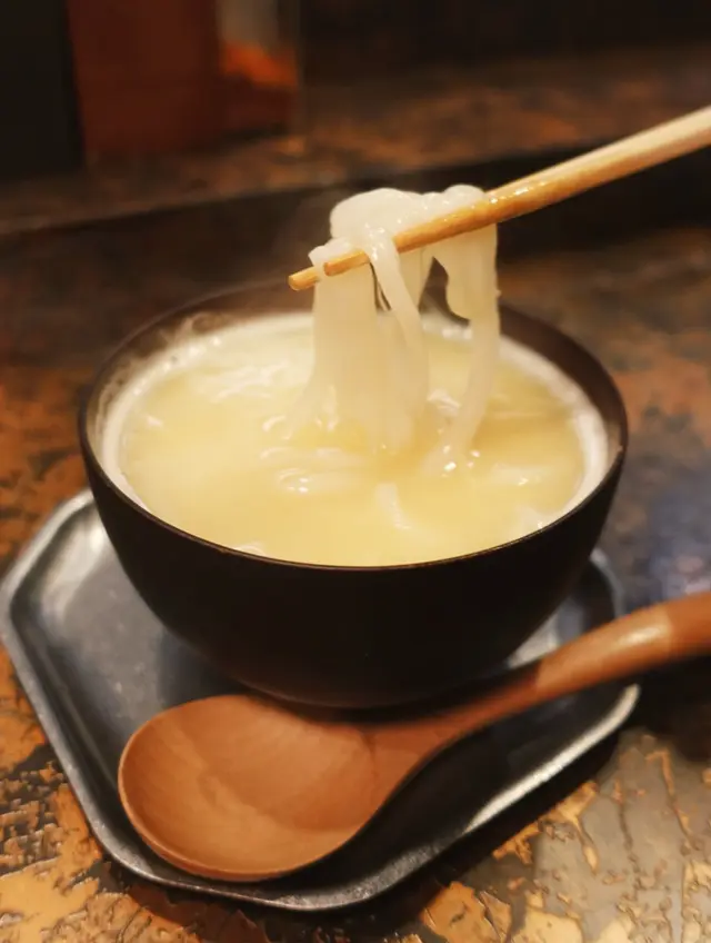 收尾必須食份carbs!! 雞湯底加入咗熟成雞肉雞骨同花膠熬製12小時 好濃厚又有膠骨原黏口嘅感覺 配滑身烏冬幾夾