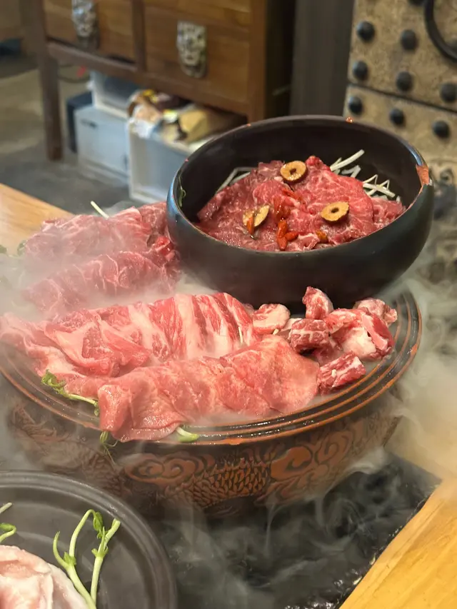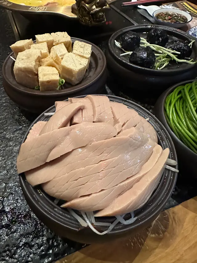 大滾友牛肉拼盤是我必選的火鍋料,封門柳、本地手切牛頸脊、和牛牛展、牛肉粒、牛舌,肉質鮮嫩,口感也各有特色。花雕酒浸的牛肉更是增添了獨特的香氣。