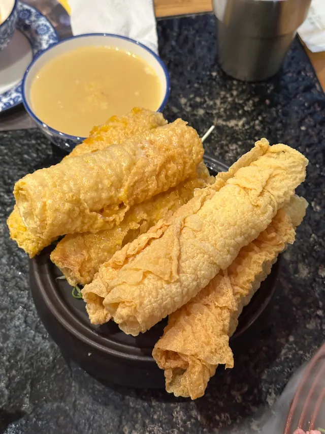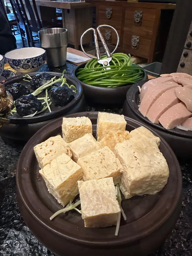 另外,手打鵝肝墨汁墨魚丸鮮甜彈牙;而大滾友醬鈴拼盤最吸的是鹹蛋黃響鈴,即叫即炸,外酥內嫩;蜂窩冰豆腐吸收晒湯汁的精華;豬腰爽脆、豬頸肉口感清新,火焰豆腐花作為最後壓軸甜品,令整餐體驗非常之開心🥳