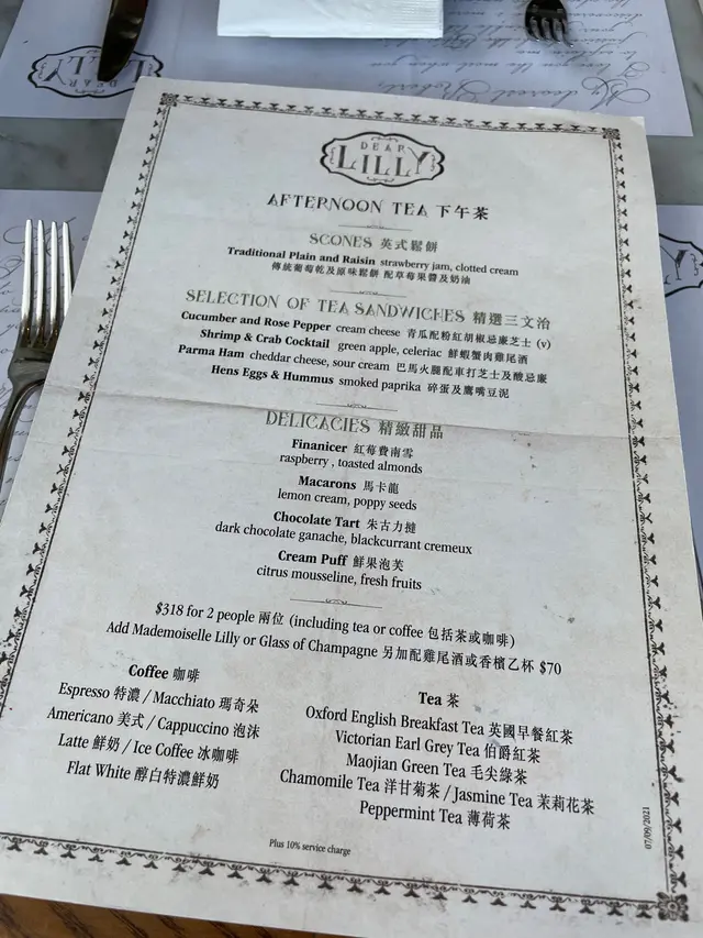 Dear Lily Afternoon Tea ($318/2 ppl)