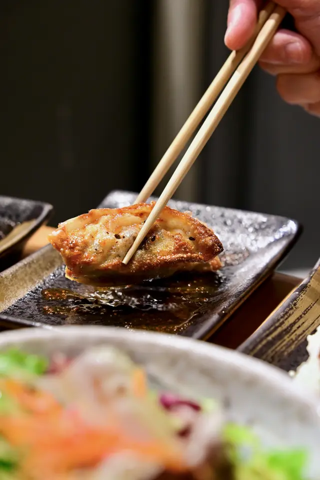 🥟自家製A5宮崎牛餃子:餃子大大隻飽滿又多汁,仲有兩種口味,分別係黑松露醬同埋辛口!黑松露口味餃子餡內混入香菇,味道好突出!