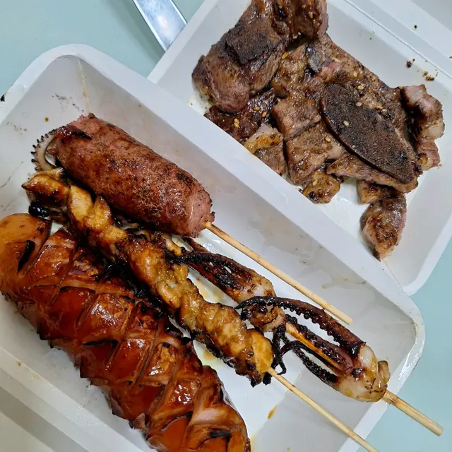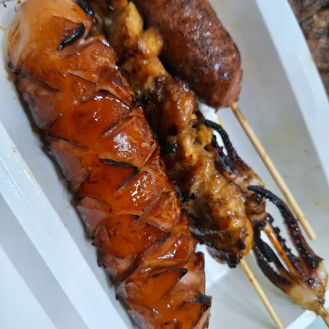 至於燒魷魚鬚同燒雞肉串同樣滋味,食起嚟一啲都唔乾身,雞肉都好夠嫩,而且外皮燒得夠香,好後悔只係買左一串,太好食。絕對有下次!