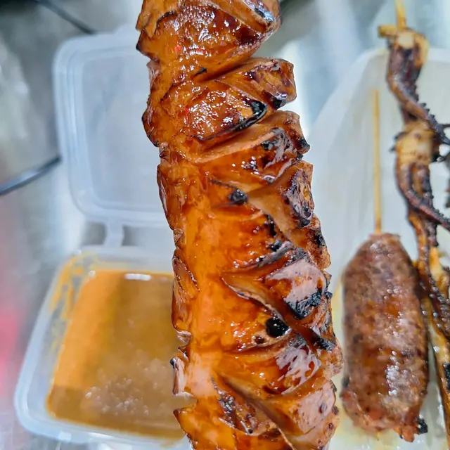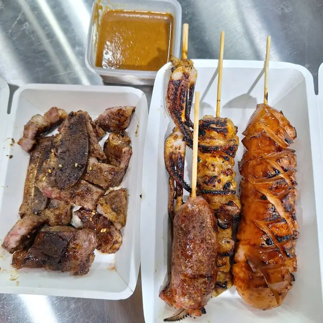串燒上到朋友度仲係熱辣辣,外皮燒得夠香,而且佢嘅獨家沙爹醬汁都非常之好食,食到好香嘅花生醬味,又有唔同辣度可以揀。