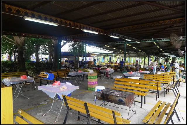 一個爐可以坐10人,坐的是長木椅,還有些圓形膠櫈提供,燒烤叉都幾新很乾淨的。