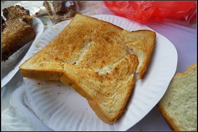 烤麵包,普通白麵包一片,加上糖蜜而吃,麵包周邊很香脆,中間的位罝還是有點軟綿,這樣才好吃。