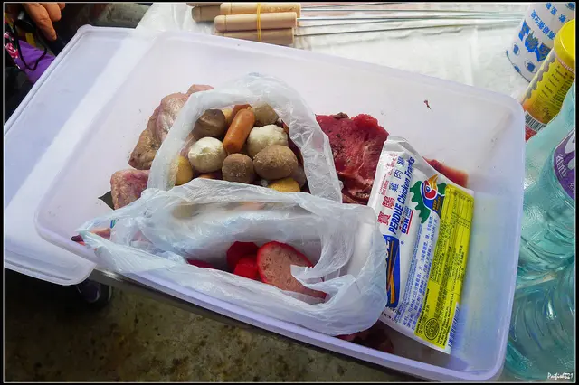 這是我們訂下的套餐食物,每圍有一份,其實都沒有數過有多少數量,但知道有肉丸、腸仔、牛扒、豬扒、雞翼。還有些食物可以即場去取,如燒賣、麵包等等。