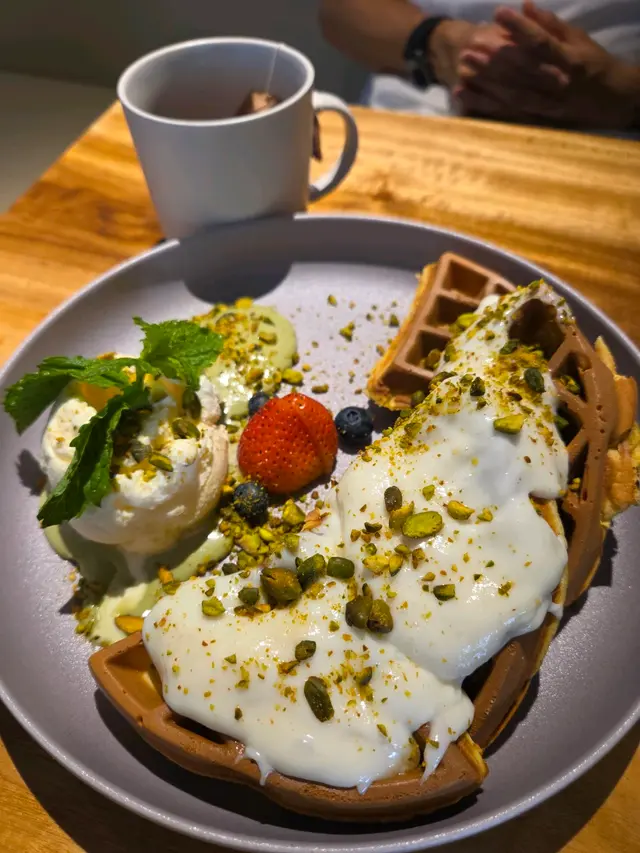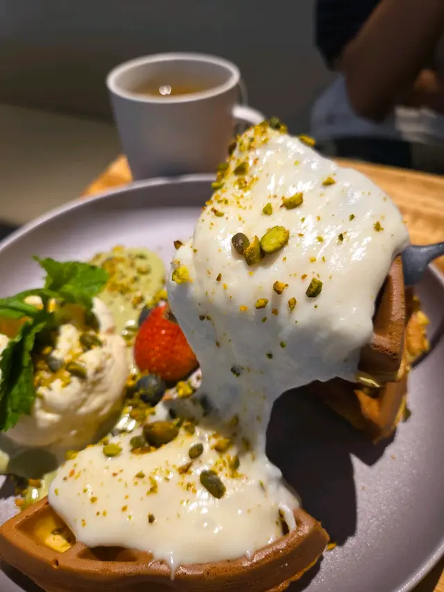🧇開心果麻糬窩夫配雲呢拿雪糕 $88