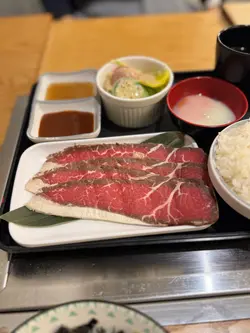 套餐配上飯、沙律同茶,另外肉量都有兩種可以選擇,但係覺得叫小份量既都好夠食。牛小排本身已經係偏重油香既部位,熟成牛食落比一般牛更帶油香,另外枱面仲有唔同醬汁可以用黎點個肉食。就咁食或者配飯食都好食﹗飯果度升級左做紫菜溫泉蛋飯,撈埋蛋汁食更加正。