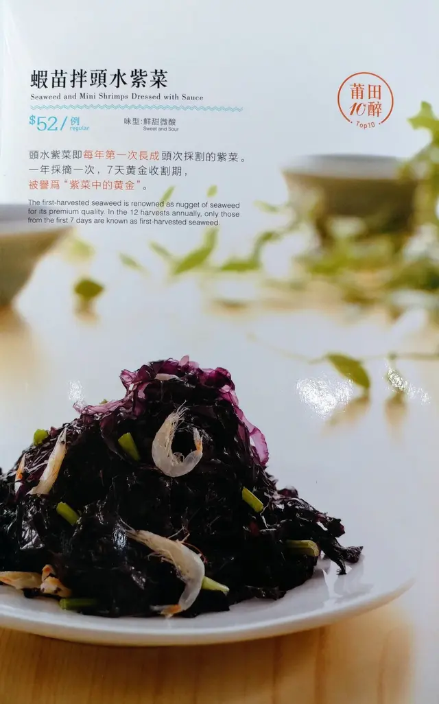 頭水紫菜比一般紫菜更爽更嫩,配以微酸的調味,非常醒胃。