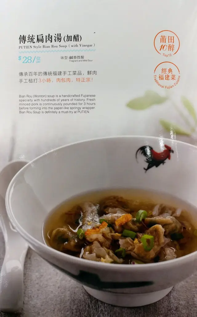 傳統扁肉湯是每位上的,湯底帶有醋的酸味,最驚喜係扁肉的皮,是以肉製造的,真正啖啖肉。
