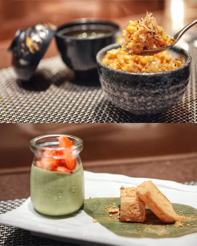 其後仲有充滿鑊氣嘅白飯魚炒飯同精美甜品抹茶布甸🤤 布甸既滑嘟嘟又有茶香👍🏻😍 整個套餐真係由頭驚喜到尾🥰 偶爾破費食餐鐵板燒都好值得👍🏻