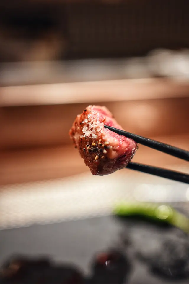 外皮焦香,內裡油脂同嫩滑嘅肉入口即融😋 建議先食一塊原味,之後先伴隨海鹽 、黑椒、黑椒汁或山葵佐料👍🏻 另外黃金爆🧄片亦十分可口😋