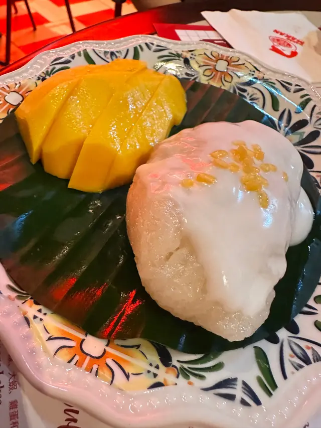 糯米飯溫熱黏糯,芒果切塊厚實多汁。椰漿甜度剛好,不會過膩,芒果清甜如蜜。