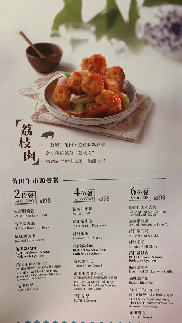 [將軍澳]抵食中午二人套餐🌟 phoebe_bei等級42020-08-221K 瀏覽 關注 中午二人去食左個午市頭等餐,價錢相對較吸引,食物都較岩個人胃口。家常燜荀乾荀乾不會太乾,甜甜的,還有小火令食物不會變冷,暖暖的,如送飯一流,或留一些來送米粉。1莆田扁肉湯扁肉湯是我最愛! 😍細細粒,皮是煙煙韌韌的,連湯吃,口感更豐富呢~莆田荔枝肉荔枝肉完全俾佢個名fake左,全碟好慶幸地有一粒荔枝肉咁多,全是肉,都不太吃到荔枝肉的香味。興化炒米粉炒米粉是愛人最愛,我就覺得普普通通的,可再炒得更有穫氣。風味燜苦瓜苦瓜是略微煎過,不太苦,挺好吃的。莆田甜品甜品簡簡單單,清甜,好吃!整體來說不錯,價錢比以前散叫抵食,份量都夠飽,尚算滿意。21以上食評乃用戶個人意見 , 並不代表OpenRice之觀點。讚好分享[將軍澳]抵食中午二人套餐🌟 莆田 (PopCorn 2) https://s.openrice.com/QrbT0ZU8v00檢舉 張貼 評分4味道4環境4服務4衛生5抵食推介美食家常燜荀乾莆田扁肉湯興化炒米粉風味燜苦瓜莆田甜品用餐途徑堂食