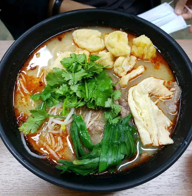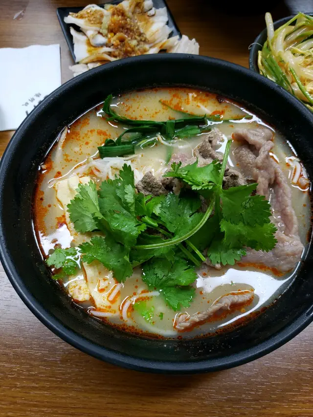每個米線本身都有韭菜、支竹、芽菜、芫茜,如果唔食既朋友,記得走左佢。我同友人都高估左佢個小辣,實質一D都唔辣,而且個湯仲好酸,唔係酸菜既酸味,似白醋既酸,而且除左酸味外,無其他味,三個字形容「唔好飲」。