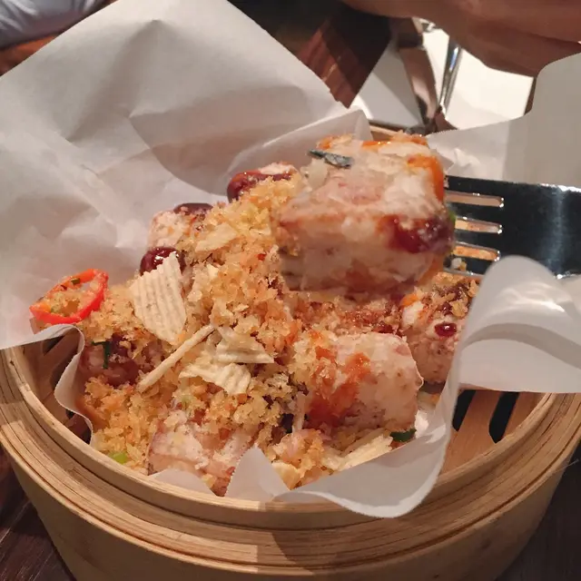 賣相非常吸引,上面舖滿炸蒜,加上香脆薯片,別具一番風味。蘿蔔糕外脆內軟,非常好吃,更帶有香酥口感,好正!