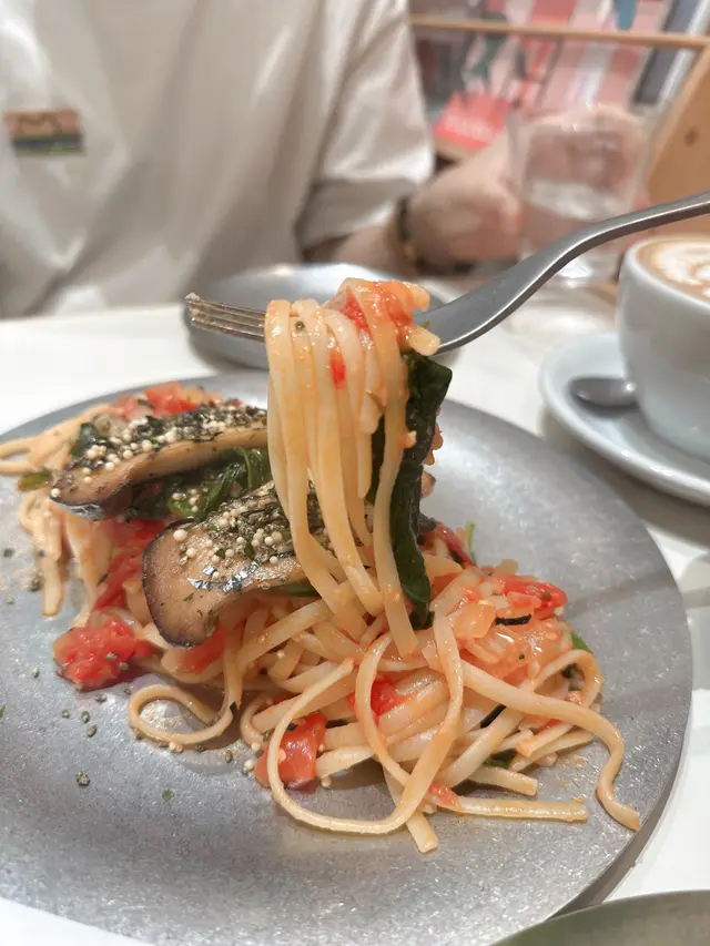⬘煎磨菇菠菜蕃茄醬扁意粉 $88