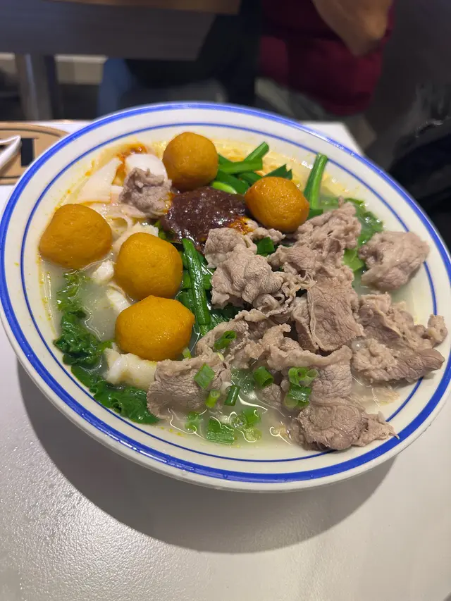 米粉搭配生菜同白醬,湯底清淡但十分入味,魚蛋同牛丸嘅口感鮮美,令人一試成主顧。腩汁嘅濃郁味道令人驚艷,完美噉提升咗成碗麵嘅層次感。