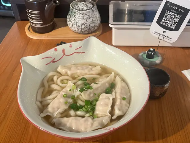 這店的烏冬是有咬勁但不算黏牙的,我個人不太喜歡這種口感,另外有米線未試,但下次來可能會叫純餃子。