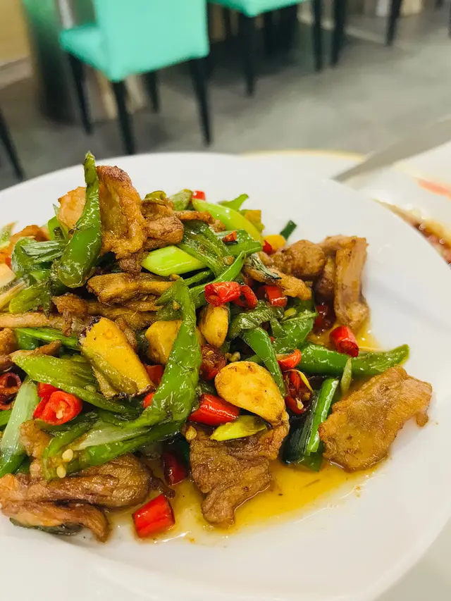 一人口就能感受到十足的鑊氣,吃得到青龍椒的香脆,新鮮嘅瘦肉配上尖青椒、蒜茸炒到金黃色計,鹹香中帶著一絲點微辣,好惹味!一定要配白飯食!