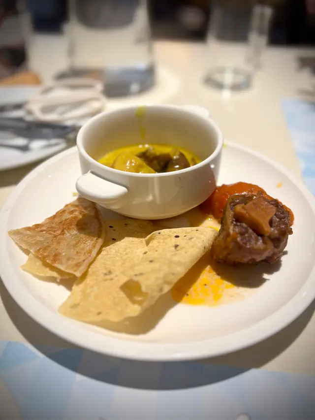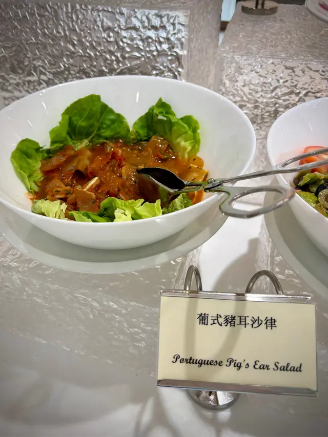 🦐 今次我最鍾意係佢哋嘅現做鮮蝦化石燒,將整隻鮮蝦加麵糊,用高溫壓成薄餅,外皮酥脆,蝦味濃郁,食落口感超正!另外,中式同葡式湯品都好有特色,例如無花果雪耳花膠燉雞湯,清甜滋潤。另外仲有葡式甘藍带子酥皮湯。