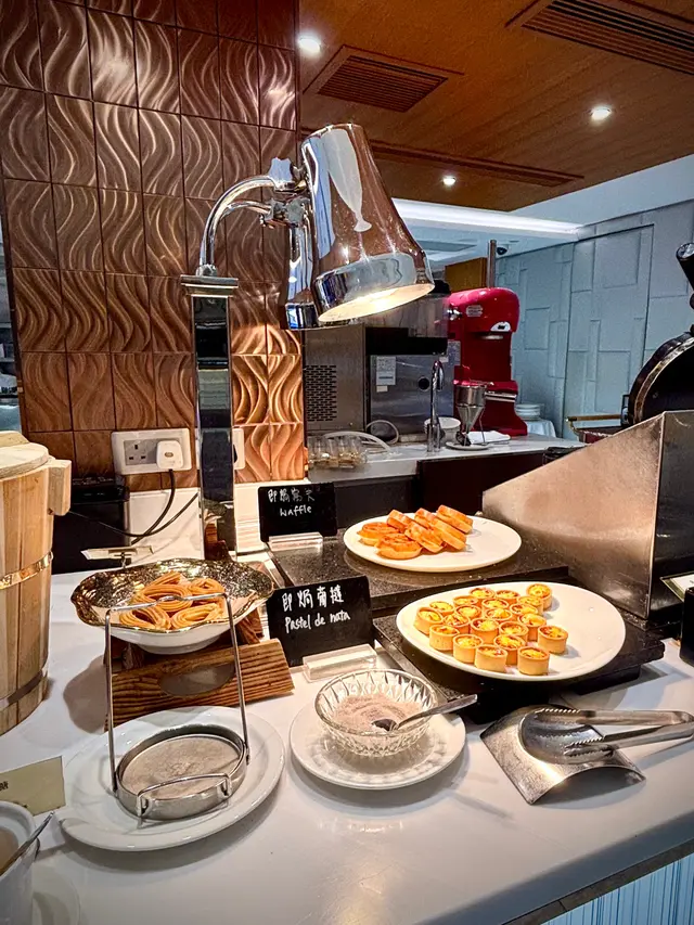 🍦呢度嘅甜品選擇多,亦都好有水準!半熟芝士葡撻香滑細膩,Churros外脆內軟,拔絲忌廉泡芙配上朱古力醬超match!Black Forest Cake層次豐富,瑞士MOVENPICK同美國Haagen-Dazs雪糕任你無限添,甜品控必試!