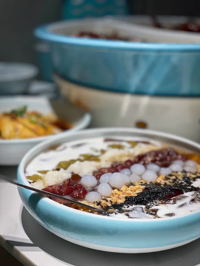 賣相吸引好有心思📸,食完辣嘢叫番個做甜品,必需的👏🏻!用上7款配料夠晒豐富,冰粉上面蓋滿青提子、酒糟、紅荳、丸子、花生、黑芝麻,相信係想打造彩虹嘅感覺🌈。咁多種配料夾埋又出奇地相配😋,酸酸甜甜,balance反主菜嘅酸辣,為晚飯畫上完美句號💯。