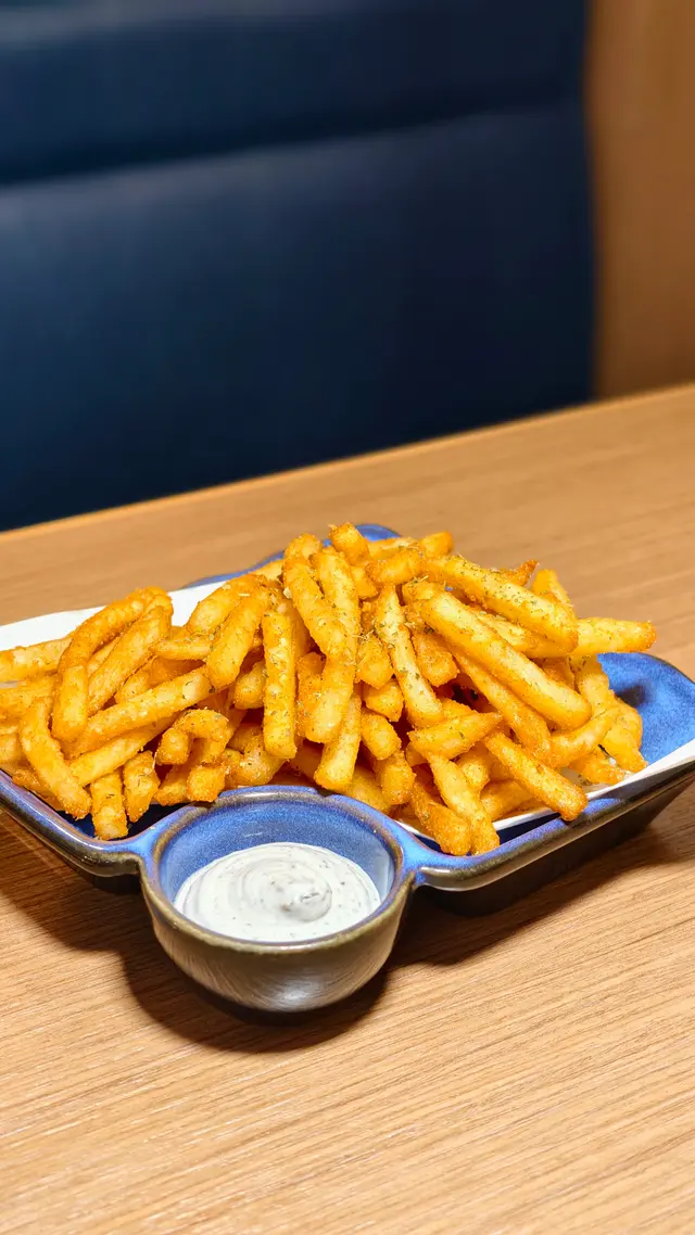 呢份薯條係邪惡小食界代表😈!金黃香脆嘅粗切薯條,炸到外層酥脆、內裡綿軟,口感非常滿足!🍟 特別之處就係個松露蛋黃醬——松露香味濃郁,配合蛋黃醬嘅香滑,酸香之中帶少少甘香,成個combo令人停唔到手😋
