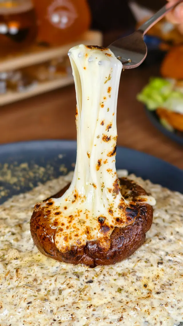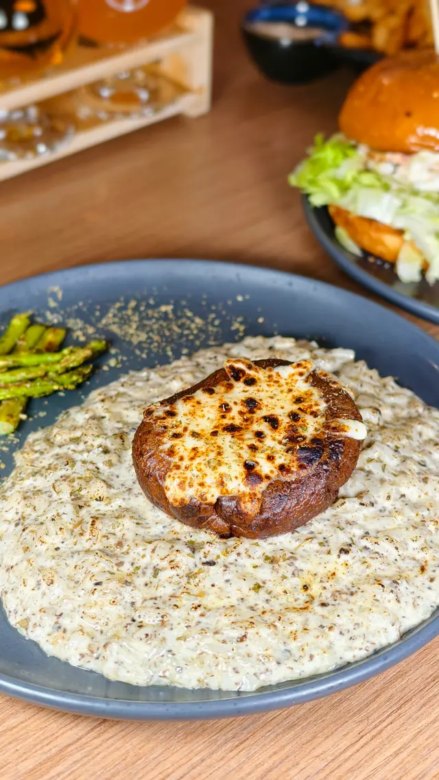 意大利飯愛好者一定會尖叫💥!呢個灸燒芝士大啡菇松露意大利飯真係香到成枱人流口水🤤。飯粒煮到恰到好處,保留微微米心口感,淋上濃郁松露醬,香氣即刻爆出嚟🌟。大啡菇切得厚厚一片,經過灸燒後帶有焦香,肉感厚實,每一啖都juicy到不得了🍄。最驚喜係面頭拉絲嘅芝士🧀,用火槍燒到表面焦脆,芝香滿溢,配合松露同菇香,味道層次豐富!