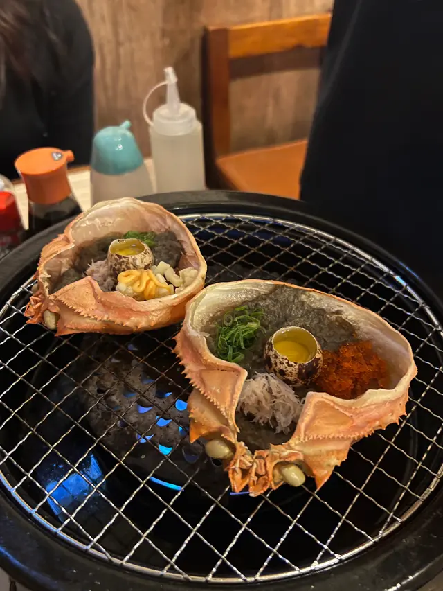 必叫 蟹味噌甲羅燒,蟹膏混埋鵪鶉蛋燒,配脆餅食鮮味大爆炸💥 芝士蟹肉版 就勁邪惡拉絲🧀!鮑魚 原殼燒夠晒彈牙,炭香十足~