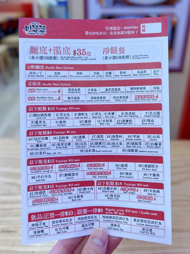 這間人氣連鎖川菜餐廳其中一間分店位於尖沙咀金馬倫道,鄰近尖沙咀站B出口,主打四川菜及車仔麵,價錢定位大眾化且份量十足。