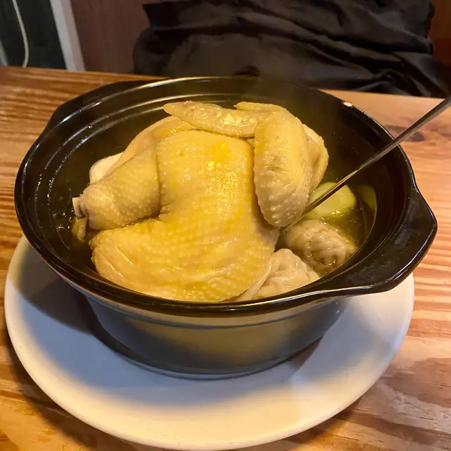 砂鍋雲吞雞,真係有成隻雞,雲吞有六大粒,仲有小棠菜,份量超多!隻雞好入味,雞湯非常鮮甜,不會太油,雲吞新鮮爽滑!