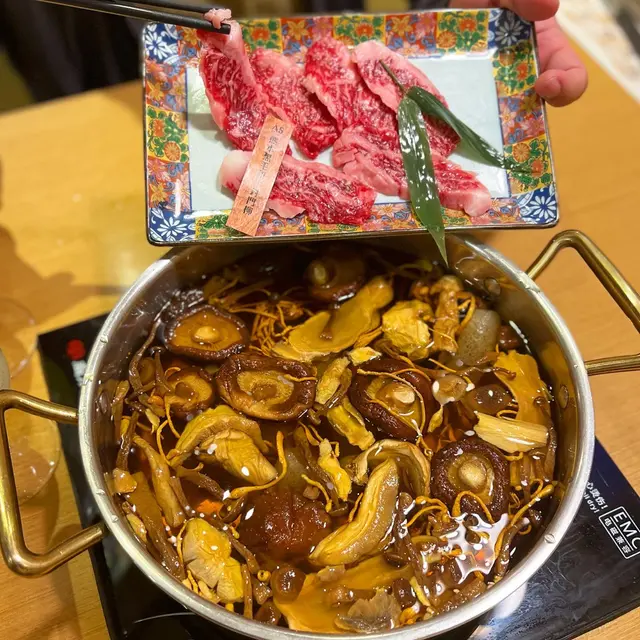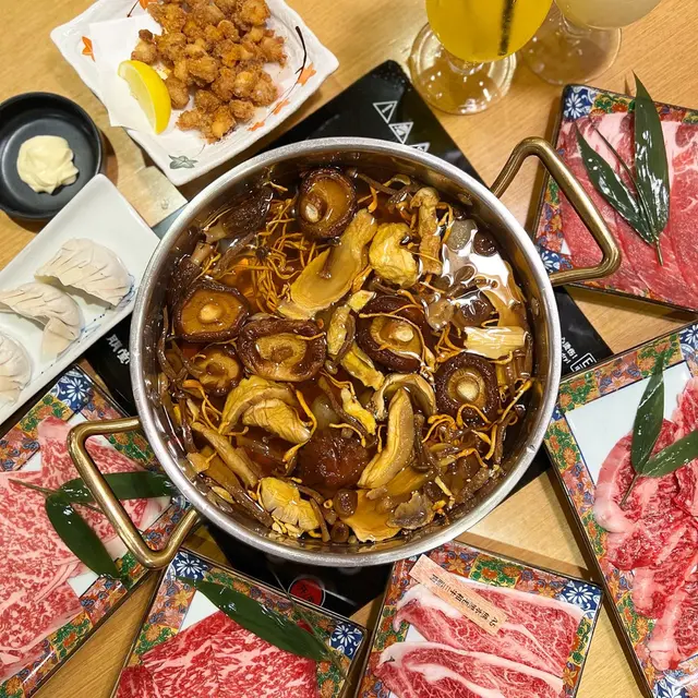 🐂呢期見個個都去食和牛火鍋,燒到我呢個火鍋控都好想食返餐火鍋,今次去到尖沙咀一間專門食「岩手黑毛和牛ビーフ」的火鍋店,餐廳裝修夠光猛,而且坐得舒服比較闊落,佢地除左有靚牛,仲有好多養生湯底,見到網上好多人點招牌花膠響螺雞金鍋,今日想清清地點了「野生竹笙松茸野菌鍋」試吓