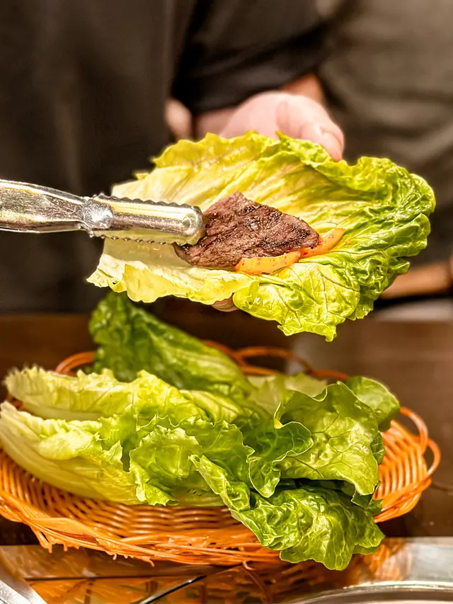 選用油花細緻的板腱部位,肉質緊實卻不失柔嫩。高溫烤炙下,表面泛起誘人的焦糖色澤,入口後肉香澎湃,帶著樸實的炭烤風味,無需多餘醬料,僅以海鹽提鮮,便能感受韓牛特有的濃郁底韻。