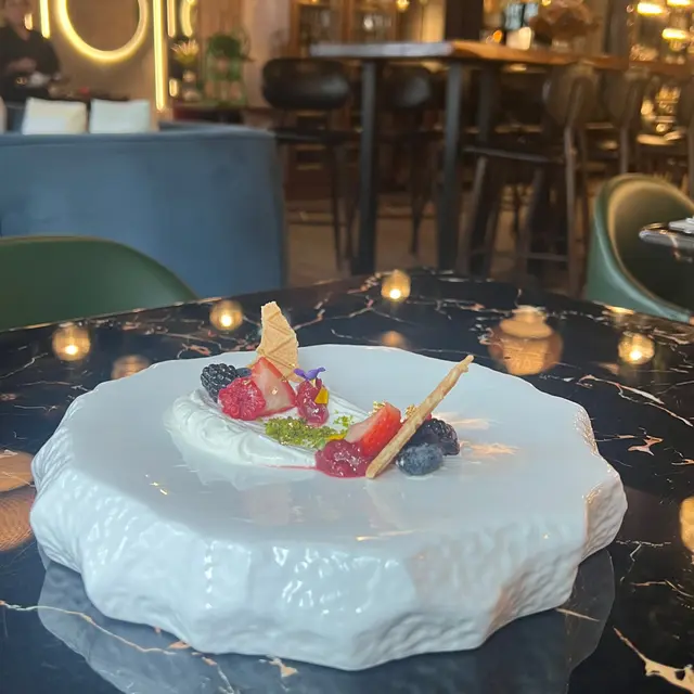 一個好似乳酪嘅甜品但就用咗酸奶、雜果、士多啤梨醬、窩夫、開心果整嘅Shrikhand,加埋Berry twist,一啲都唔膩食食吓就食晒!