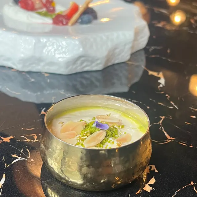 濃郁嘅鮮奶奶凍,加咗啲藏紅花味嘅哈蜜瓜同堅果,好好味又唔太甜!