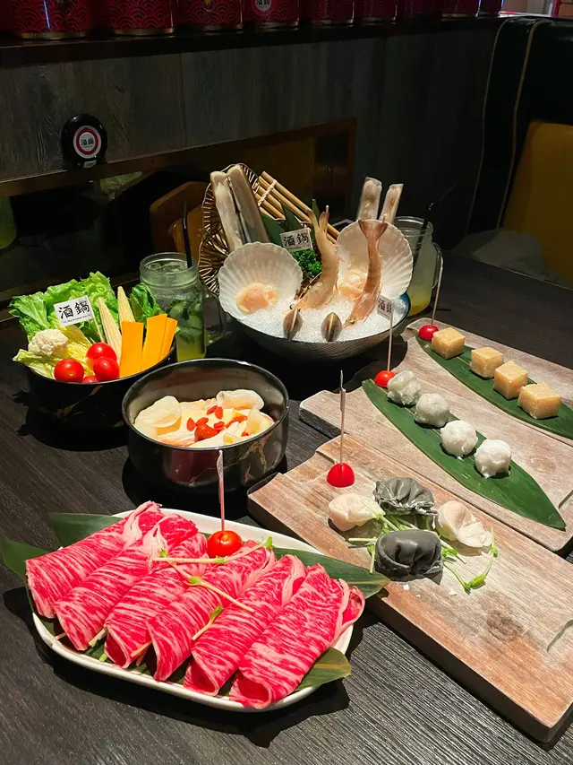 套餐火鍋配料包括黑毛和牛、海鮮拼盤、黑松露蝦蟹餃、魚皮餃、手打墨魚丸、手打芝士蝦丸、什錦蔬菜籃同招牌凍豆腐,種類好多,超級豐富🤩! 我地揀左黃金美人湯底,湯底呈黃金色澤,飲落鮮甜暖胃,花膠同雞件都係自己落,花膠爽口大舊,雞肉都好鮮嫩,估唔到仲有豬肚,豬肚食落都頗為爽口💯。