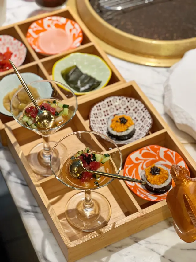 鋪滿豐腴的海膽滑溜得幾近即化,韓式飯卷包裹著酥脆的炸蝦爽滑彈牙,還有多款蔬菜,入口清新輕怡。