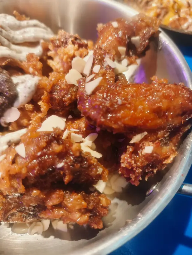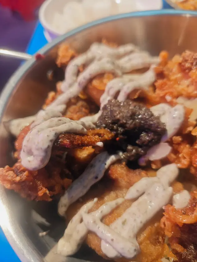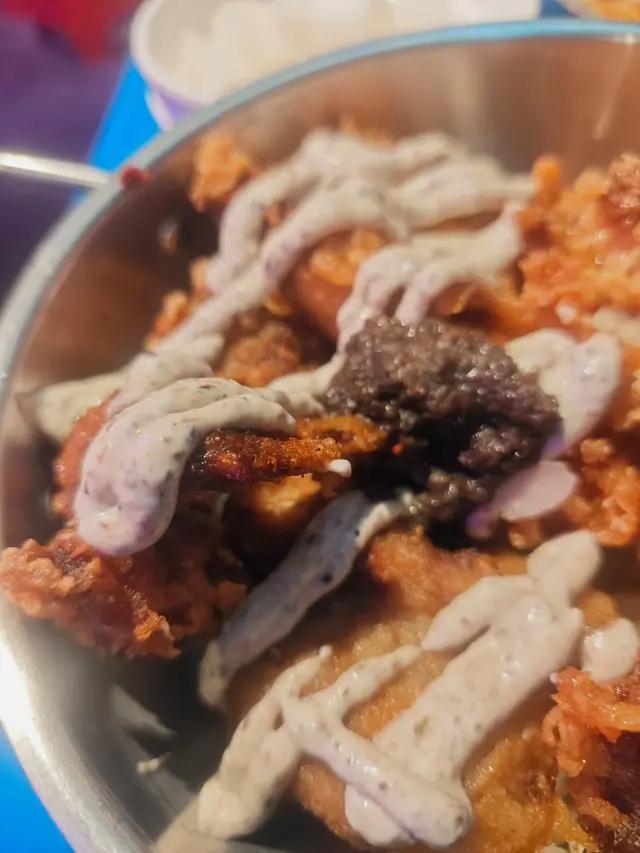 兩款食物份量都夠大,三至四個人分享就最啱。餐廳環境充滿韓國街頭風,播住K-pop,氣氛好輕鬆。雖然周末要排陣隊,但為咗呢個芝士炸雞,絕對值得再encore!