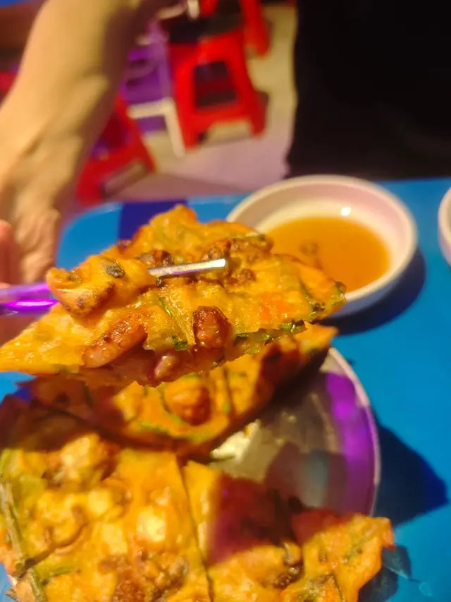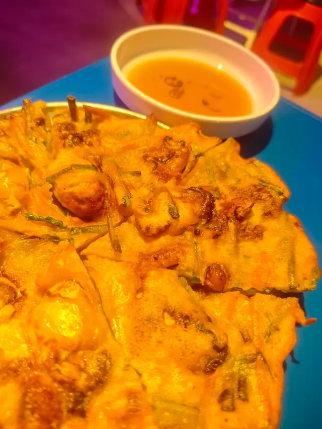 另一道海鮮煎餅絕對係我食過數一數二嘅版本!煎到金黃香脆,邊位脆得像餅乾,但中間保持軟糯。海鮮料落得超足,每啖都食到魷魚、蝦仁同蔥段,仲有啲脆口嘅蔬菜增加口感。點埋佢哋特製嘅醬油,酸酸甜甜更加開胃,完全唔會覺得油膩。