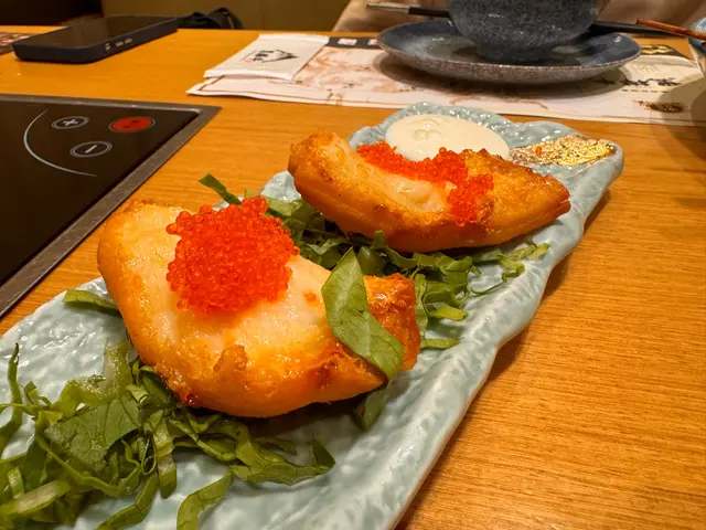 我覺得一定要食嘅就係「A5熊本黑樺和牛和尚頭」同「A5熊本黑樺和牛特上霜降牛小排」,啲雪花睇落真係好靚,食落去都唔會好膩,雖然牛味真係冇封門柳咁重,但係個人鍾意食到啲油香味。而和尚頭本身都係牛嘅稀有部位,食得出佢嘅嫩滑,舖頭普遍提供嘅牛質素都好高,油花分布均勻,冇一塊好鞋口。其他配料我就嗌咗啲墨魚滑、羽衣甘藍,然後encore咗鬼馬油炸鬼。佢嘅柚子炸雞翼都唔錯,但係就正常發揮。如果你問我嘅話,淨係專注食牛就已經好足夠,飽到連雪糕都唔想食。