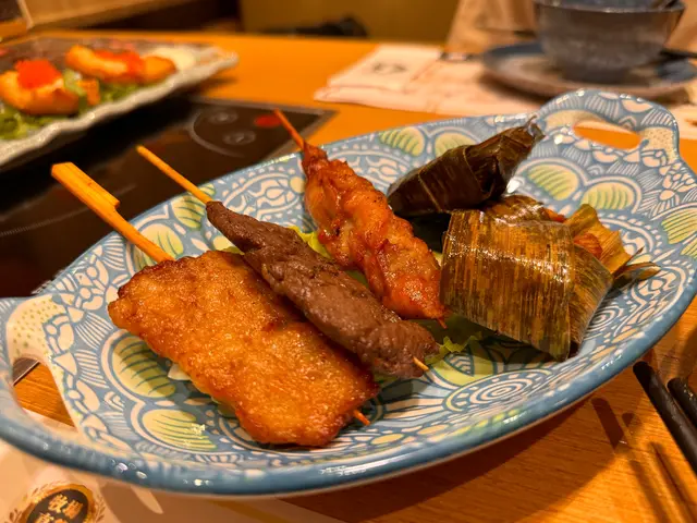 個人嚟講我最鍾意佢嘅鬼馬油炸鬼,佢喺上面鋪咗一層蝦滑,食落冇想像中咁香口,喉嚨都頂得順,佢仲好貼心咁附上沙律醬。由於我好鍾意佢脆口嘅口感,所以冇試過放佢入火鍋入邊,有興趣嘅都可以試吓。至於口水汁麻辣拼盤,花椒味都比較重,但係都幾香,雖然叫麻辣但係唔會話太辣。而泰式串燒拼盤,我覺得最好食嘅就係斑斕香葉雞,燒得好香,肉質都好嫩滑。