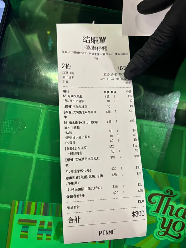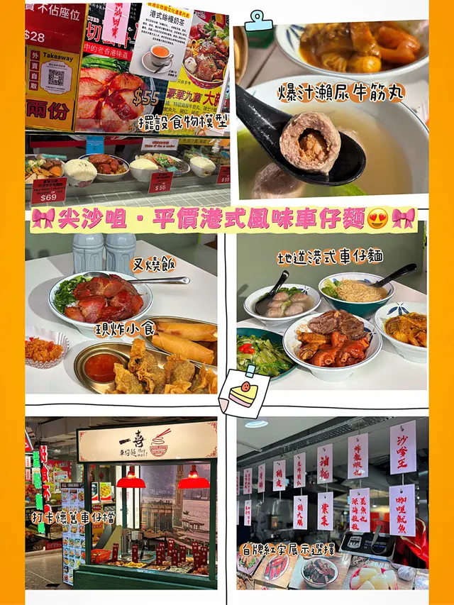 餐廳提供多款地道港式美食,車仔麵可自選配料或直接點選配料豐富的豪華九寶麵、十寶麵,價錢合理,份量充足。招牌配料包括爆漿瀨尿牛筋丸、瑞士雞翼和秘製黃金雞湯底,風味獨特。此外還有厚切叉燒、炸韭菜餃及生菜魚肉等多款小食。餐廳不設加一服務費,性價比高。