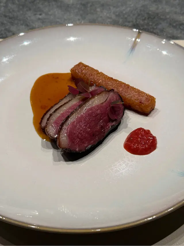 鴨胸靜置鎖住肉汁,切厚片呈好靚嘅胭脂粉紅色,又腍又juicy