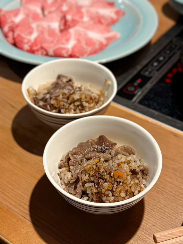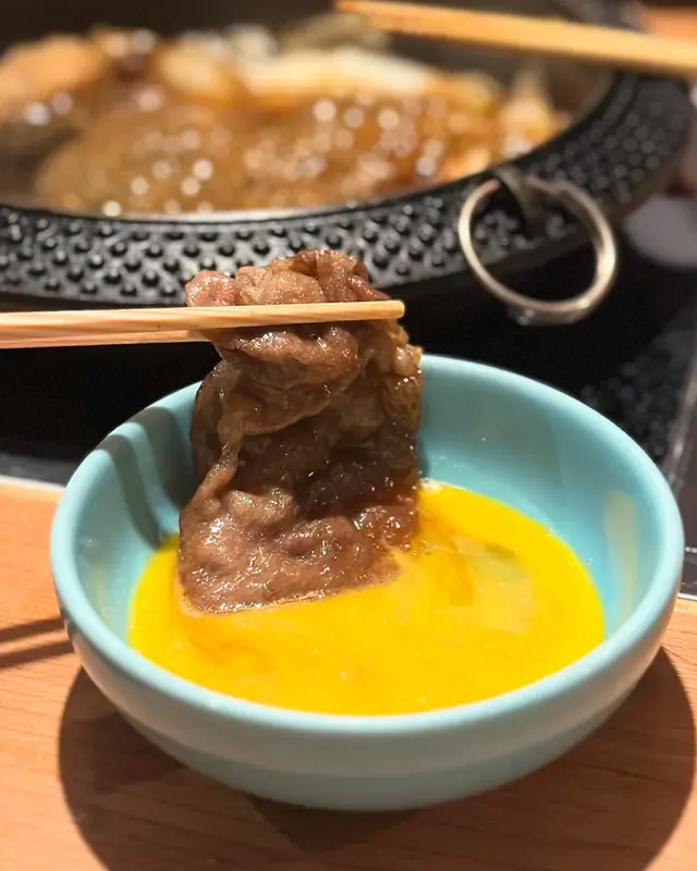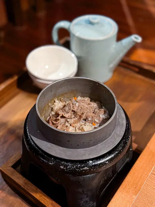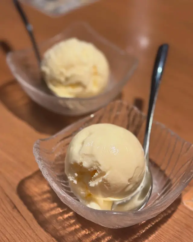 重頭戲A5宮崎和牛牛肩肉sukiyaki,油花均勻肉質嫩滑,點埋生雞蛋黃一齊好正😛野菜、豆腐、冬菇索滿晒甜甜嘅壽喜燒汁😙食完sukiyaki仲有和牛釜飯,食落充滿油香勁邪惡!🥹最後嘅甜品有雲呢拿雪糕,為整餐畫上完美句號😋