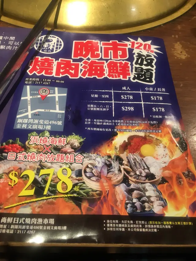 放題,上網睇到like fb page的優惠係Facebook like & share就會送浜燒海鮮拼盤,預早一日訂位就可以