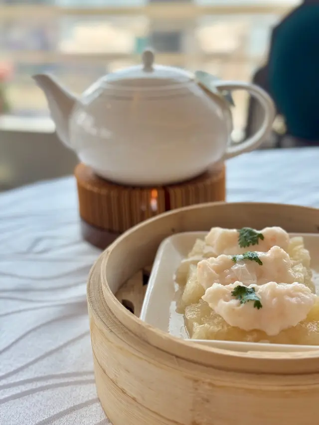 蝦餃皮沾上金邊,盡顯高級感,蝦肉豐富,爽口彈牙,多汁鮮味十足,讚